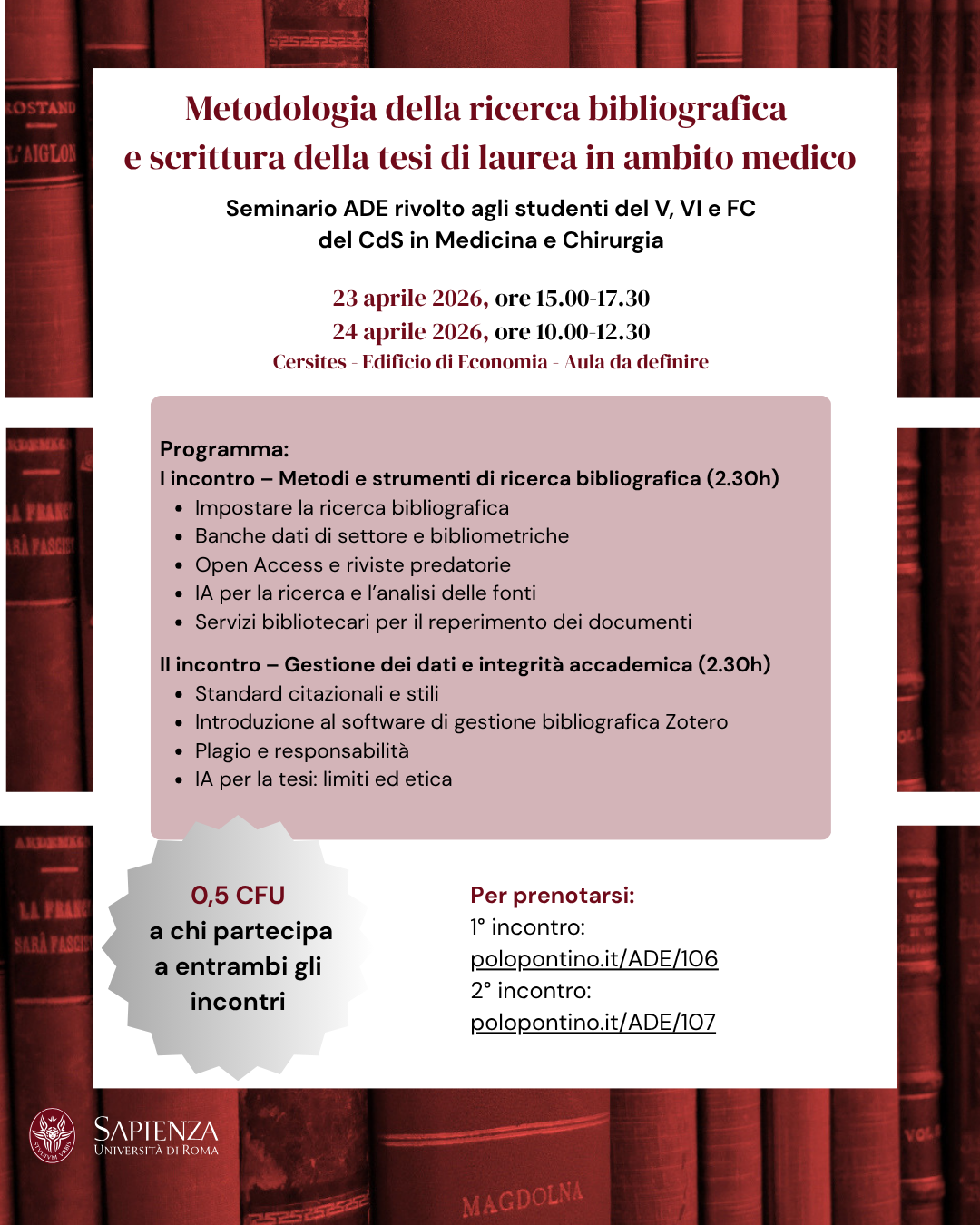 ADE "Metodologia della ricerca bibliografica e scrittura della tesi di laurea in ambito medico - 2° INCONTRO" del